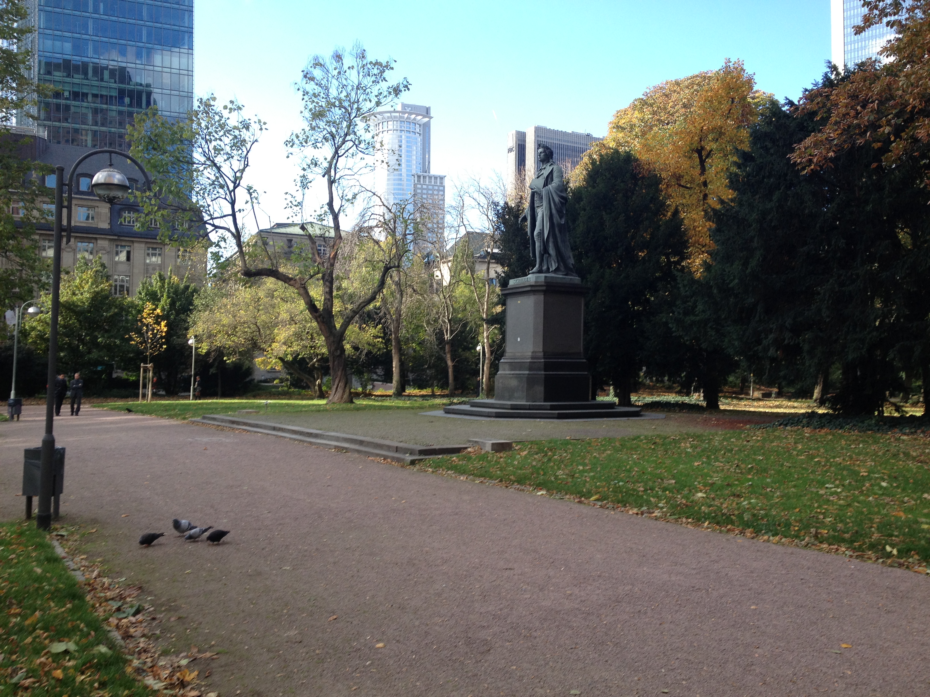 Gegenüber am Rande der Taunusanlage Nr. 12 befindet sich eine öffentliche Toilette. D.h. sie ist Tag und Nacht 24 Stunden für jedermann kostenlos zugänglich. Sie ist ein Kunstwerk des französischen Künstlers Cyprien Gaillard und heißt "Frankfurter Schacht". Er ist ein leerer ...